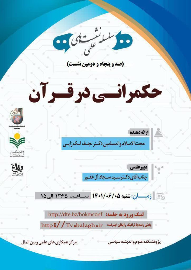 نشست علمی حکمرانی در قرآن (۱۵۲) آثار علمیاخباراسلایدر بوسیله iscaadmin به روز رسانی شده در آبان ۶, ۱۴۰۴ 0 به اشتراک گذاری 🎧دانلود فایل صوتی نشست حکمرانی در قرآننجف لک زایی 0 به اشتراک گذاری
